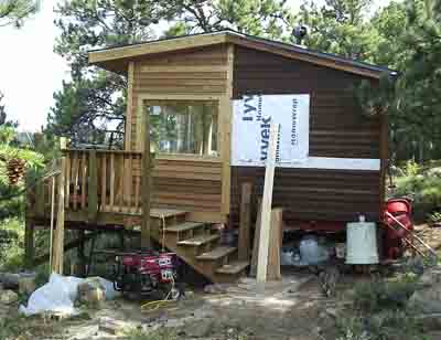 At the time of this interview in 2003, there were sixty buildings on Shambhala Mountain Center land. When the first settlers arrived in the fall of 1971, there was just an empty mountain valley. Faced with the imminent arrival of winter, the Pygmies started to build and very quickly, during the first few years, makeshift cabins, a-frames, yurts, and domes sprung up higgledy-piggledy over the land. Amazingly, most of these structures were still standing in 2003. However, in the past decade, most of them have been removed. The photographs below (taken in August 2004) represent all of the original dwellings that were still standing at that time. Most were built by the Pygmies, some were built by other early students.